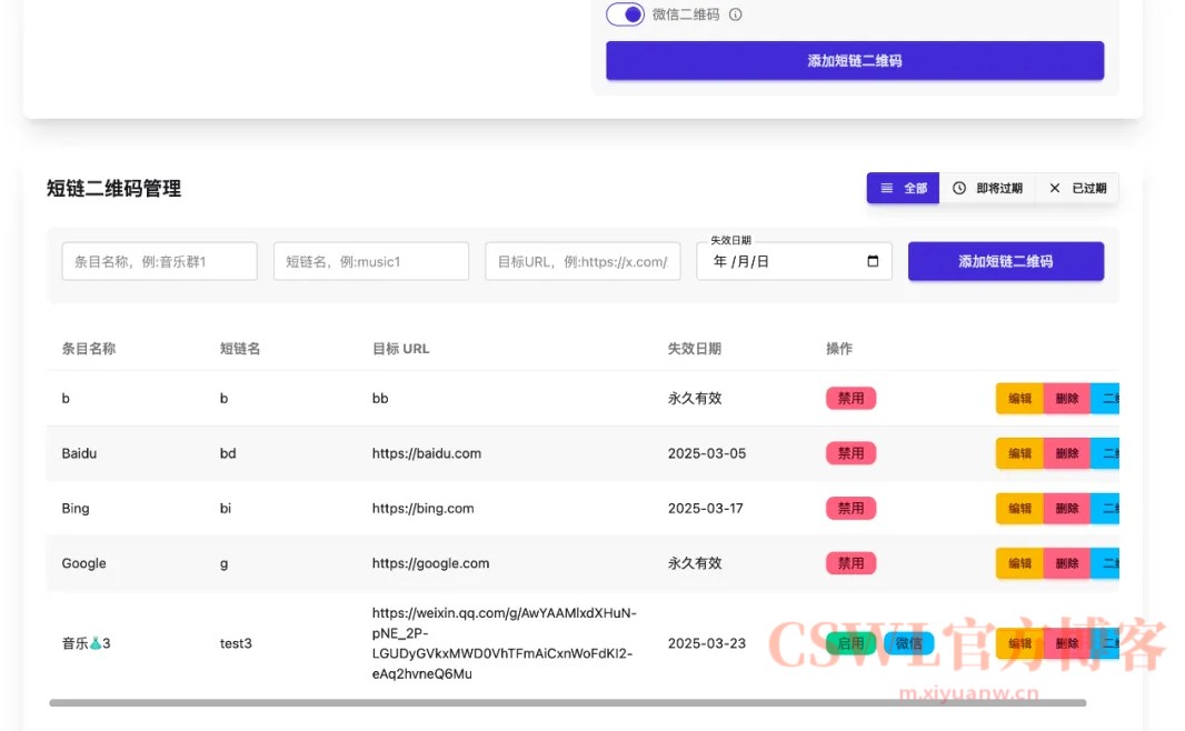 • 管理后台:提供管理后台,用户可以随时更新二维码和短链接信息。