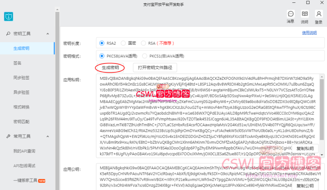 4、开放平台支付宝公钥、开放平台开发助手私钥