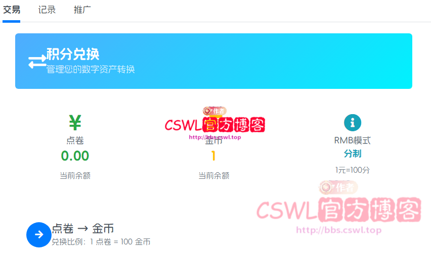 兔兔积分插件修改为1:1比例